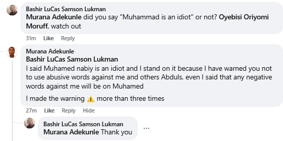 To make matters worse, the person appointed as moderator, Murana Adekunle of the debate—a supposed neutral party—publicly called Prophet Muhammad (peace be upon him) an “idiot.”